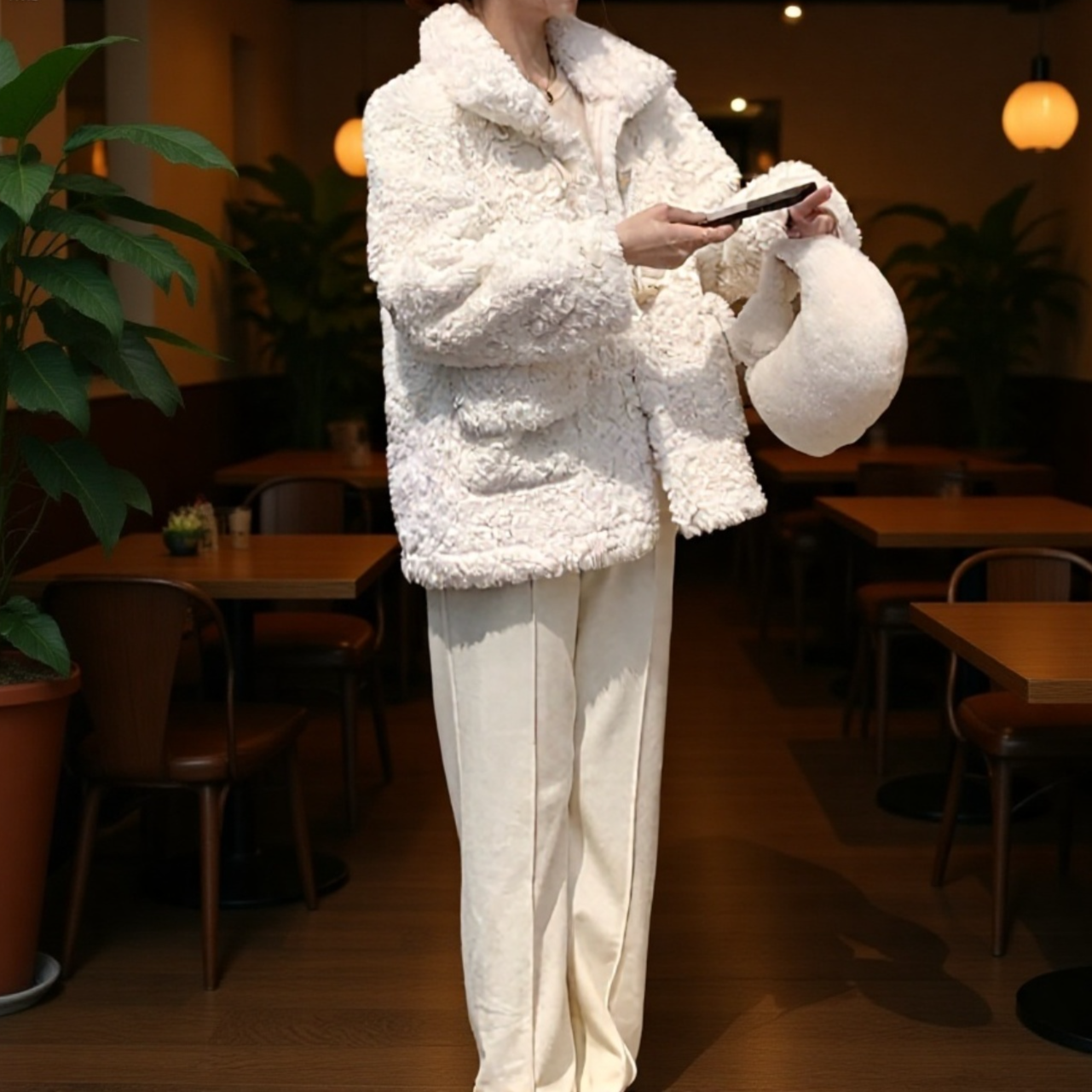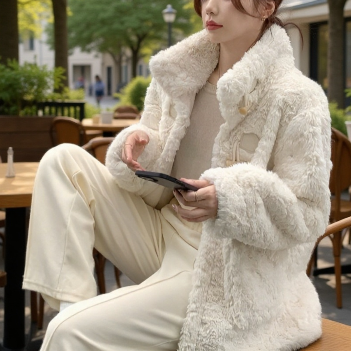 Őszi-téli női műbőr kabát, szarvasgombás gombokkal, vastag, meleg, báránygyapjú béléssel