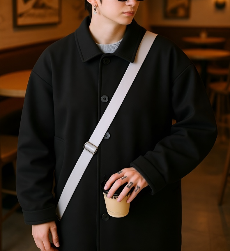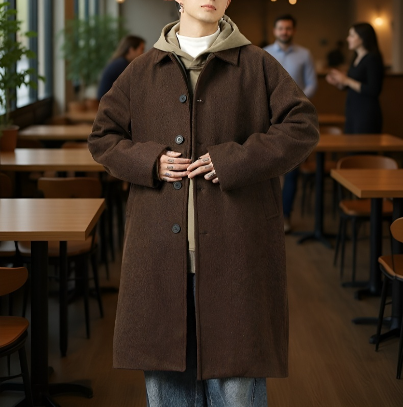 Férfi gyapjú szövet kabát, duplán hordható, hosszú, térdig érő, őszi-téli japán divat